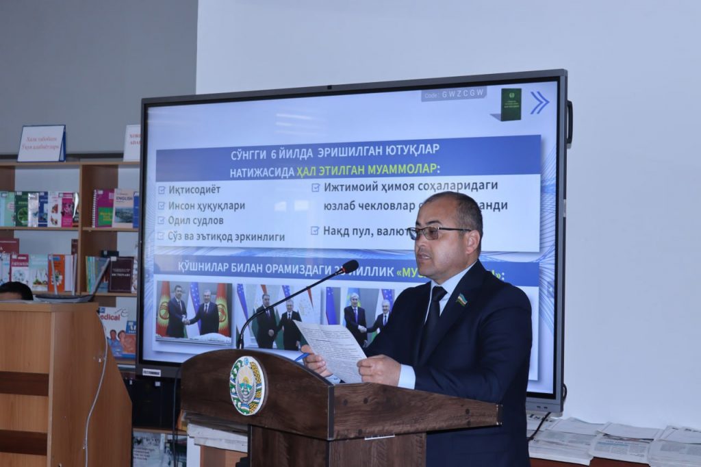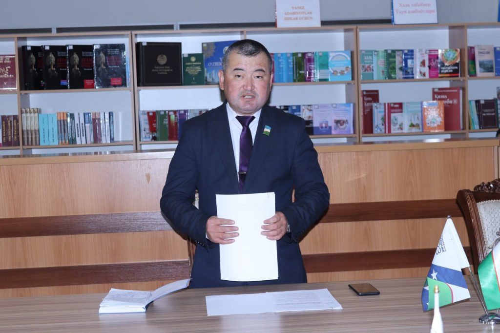 Unda O‘zbekiston Respublikasi Oliy majlisi qonunchilik palatasi deputati Mardayev Botir Xurramovich hamda xalq deputatlari viloyat kengashi kotibiyati mudiri Abduraimov Saydullo Berdishukurovichning fikr-mulohazalari tinglandi.