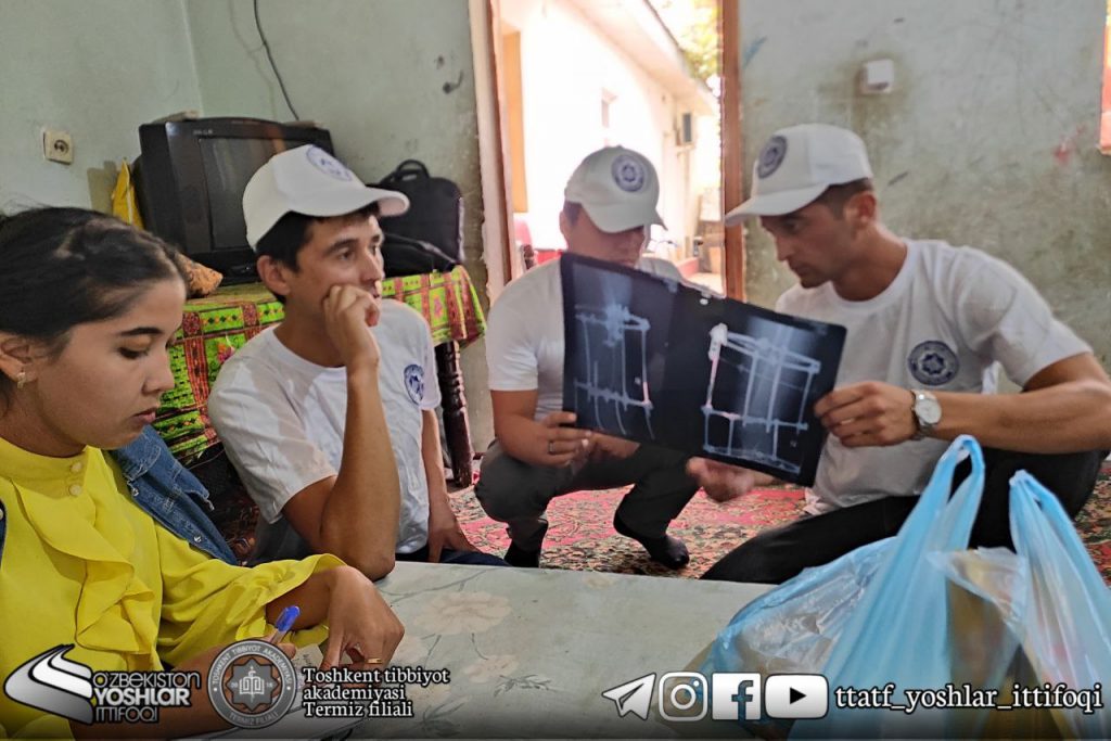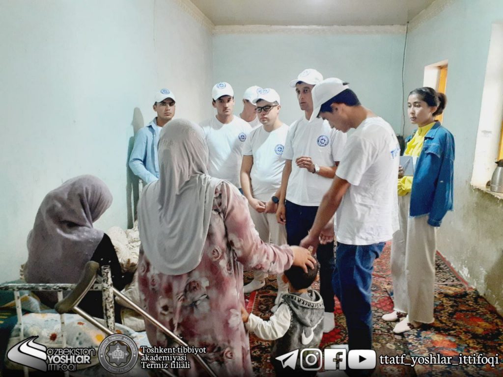 Together with the “Volunteer team” of the Termiz branch of the Tashkent Medical Academy and the leader of the Marifat neighborhood, they supported the families in need of social protection who live in the “Majnuntol” neighborhood. After talking with them, they organized mobile medical examinations at the meeting of citizens of the neighborhood attached to our branch.