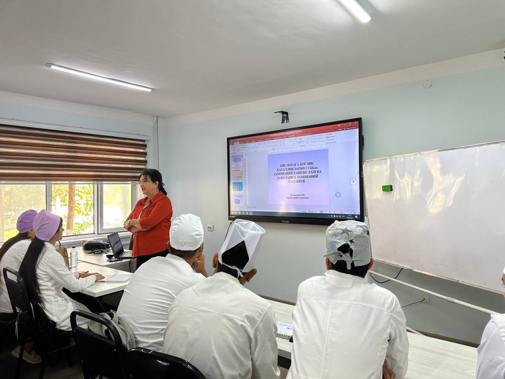 Shu munosabat bilan, Toshkent tibbiyot akademiyasi Vrachlar malakasini oshirish kafedrasi mudiri, tibbiyot fanlari nomzodi, dotsent R.K.Dadabayeva oilaviy shifokorlarni o‘qishini tashkillashtirish maqsadida Toshkent tibbiyot akademiyasi Termiz filialiga tashrif buyurdi hamda filial talabalariga «Kislotaga bog’liq kasalliklarni tashxislash va davolashga yondashuv» mavzusida seminar o’tkazdi.