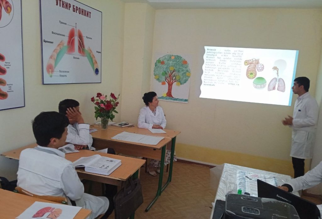 Toshkent tibbiyot akademiyasi Termiz filiali professor-o‘qituvchilar tomonidan talabalar uchun «Ichki kasalliklar propedevtikasi, reabilitologiya, xalq tabobati va endokrinologiya» kafedrasida «Bronxitlar» mavzusida ochiq dars bo‘lib o‘tdi.