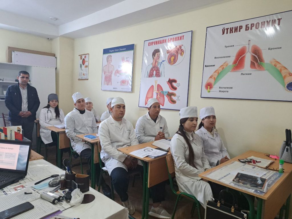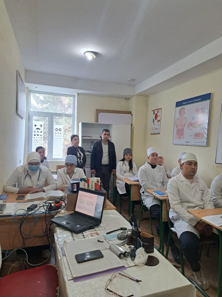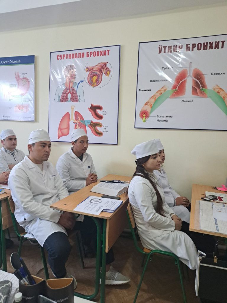 Toshkent tibbiyot akademiyasi Termiz filiali “Ichki kasalliklar, HDT, gematologiya va oilaviy shifokorlikda terapiya” kafedrasida 2-son davolash fakulteti 4-kurs, 407 guruh talabalariga “Ichki kasalliklar” fanidan ochiq amaliy mashg‘ulot darsi bo‘lib o‘tdi.