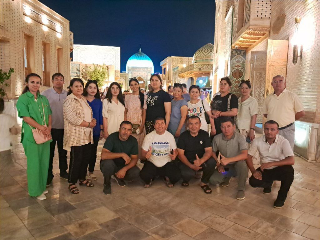 Filial jamoasi sayohatning so’ngi kunida Qadimiy Samarqandga tashrif buyurishdi va shaharning diqqatga sazovor joylaridan, Bibixonim maqbarasi hamda mahobatli Registon maydoni va unda qad rostlagan uchta madrasa, shuningdek, Samarqand cityni tomosha qildilar.