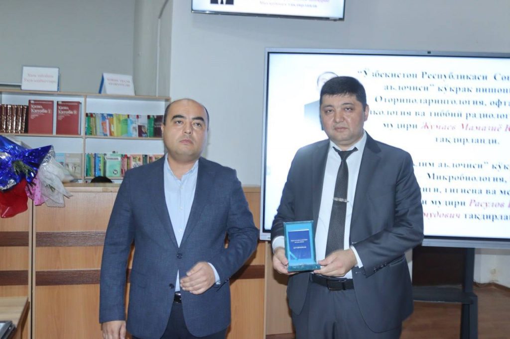 O’zbekiston Respublikasi Sog’liqni saqlash a’lochisi nishoni bilan – «Otorinoloringologiya, oftalmologiya, onkologiya va tibbiy radiologiya» kafedrasi mudiri M.Y. Jumayev taqdirlandi.