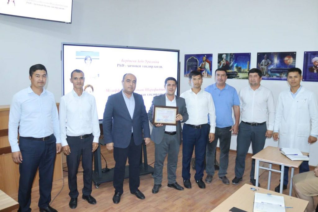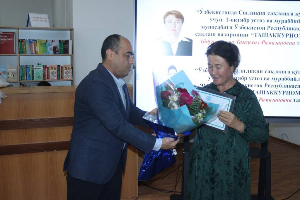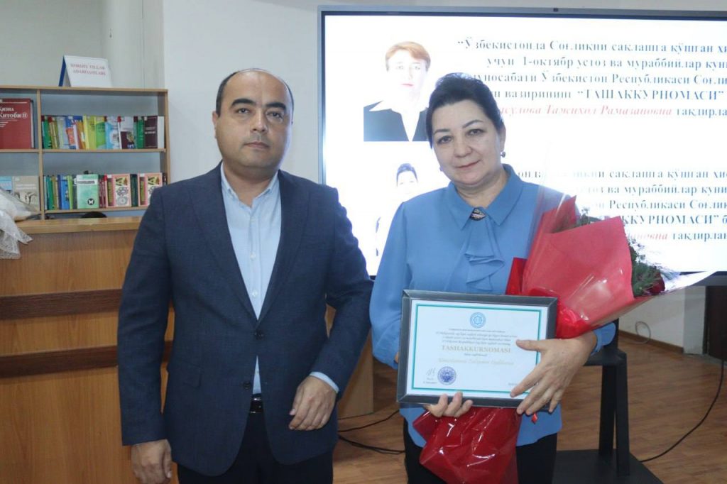 «Oliy ta’lim a’lochisi» ko’krak nishoni bilan – «Mikrobiologiya, jamoat salomatligi, gigiyena va menejment» kafedrasi mudiri Sh.M. Rasulov taqdirlandi.