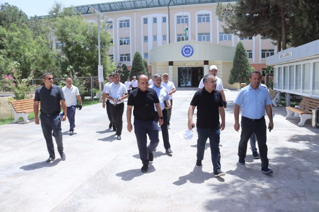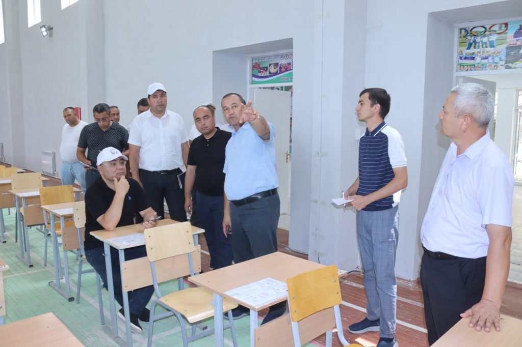 Tashrif davomida, filialda 2023/2024 o’quv yili uchun kirish test sinovlarini o’tkazishga tayyorgarlik ishlarining holati shunigdek, test sinovlari o‘tkazilishi rejalashtirilgan filialning 270 o’rinli sport zali (7-bino) ning tayyorlik holati, abiturientlar va ularning yaqinlari uchun yaratilgan shart-sharoitlar o’rganildi.
