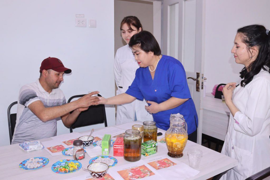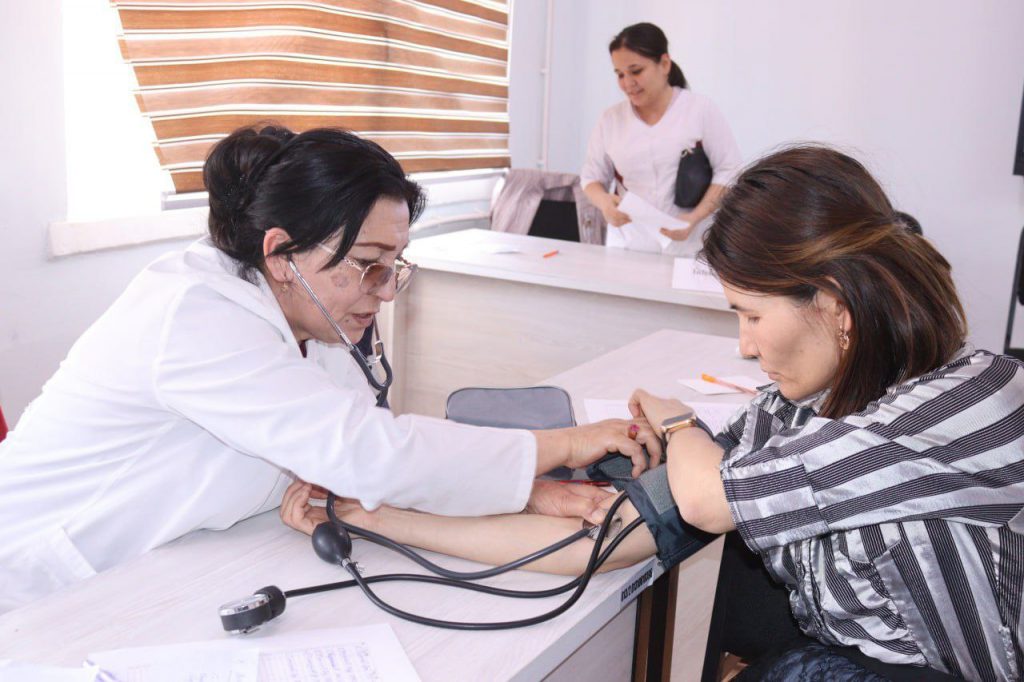 Tibbiy ko‘rikdan tashqari soha xodimlari sog‘lom turmush tarzi, ratsional ovqatlanish, jismoniy faollik to‘g‘risida suhbat o‘tkazishdi.